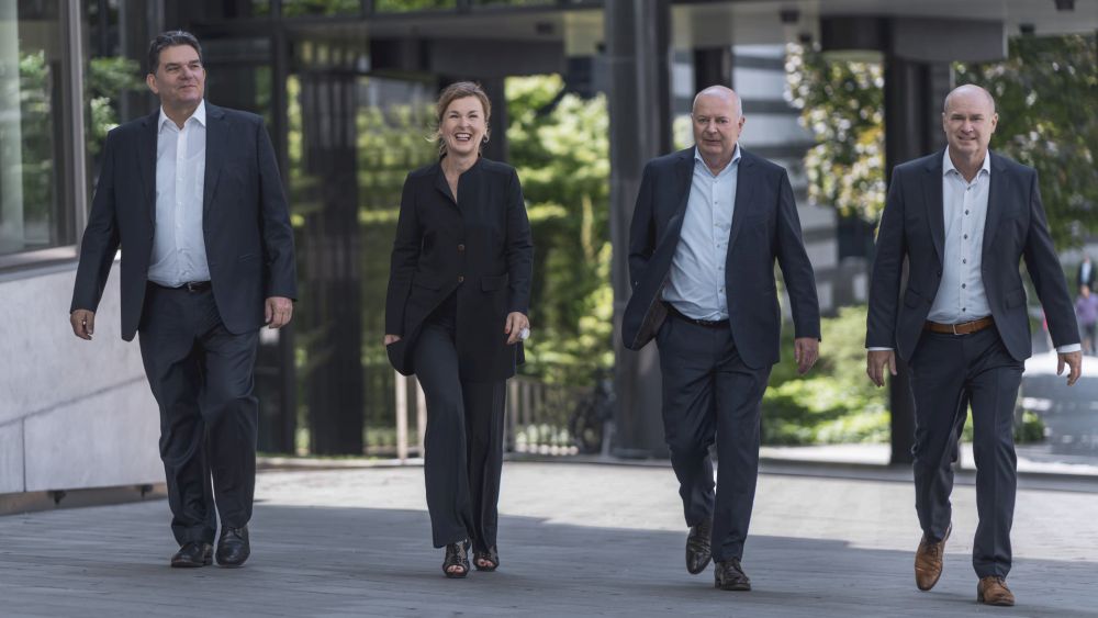 Geschäftsführer der inovi gmbh: Maro Arnold (ARNOLD IT Systems GmbH & Co. KG), Grit Kubin (HAFNERS BÜRO GmbH), Uwe Appel (entegra eyrich + appel gmbh) und Jens Günther (AKG Civil Solutions GmbH)